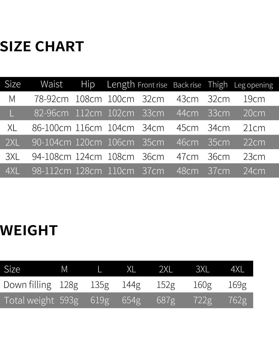 Down Pants with Thickened Windproof Layer.